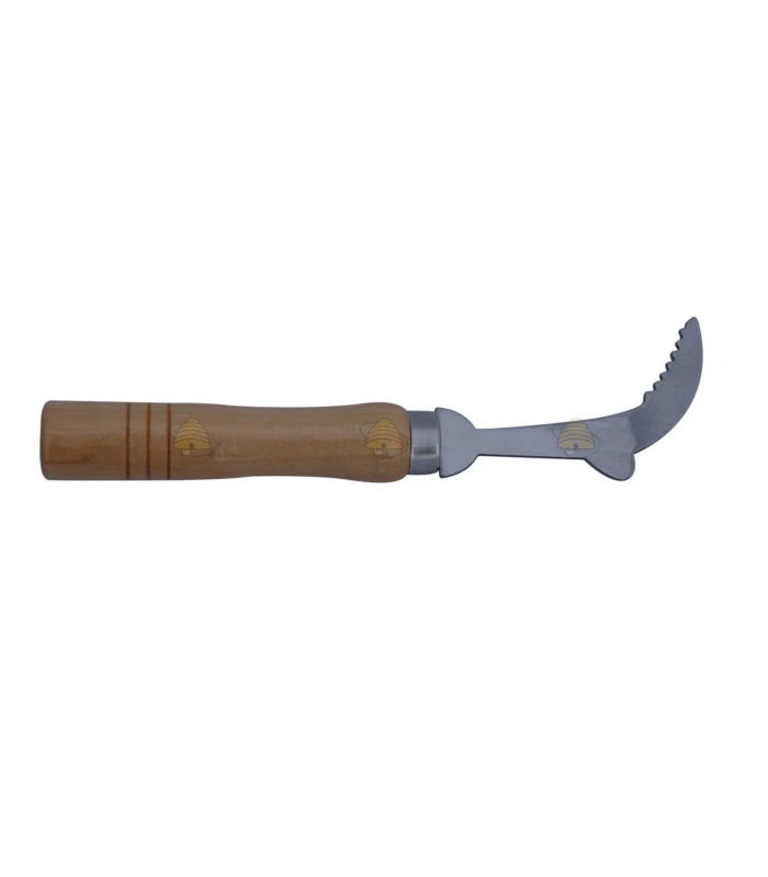 Stemmejern i rustfrit stål med et solidt træhåndtag. Et praktisk værktøj til bistadet, når tavlerne skal løftes. Man stikker stemmejernet ind mellem tavlen og bistadet for at løsne tavlen. Stemmejernet er 20,5 cm langt, og det rustfri stål har en tykkelse på ca. 3 mm. Derfor er det en meget robust konstruktion.