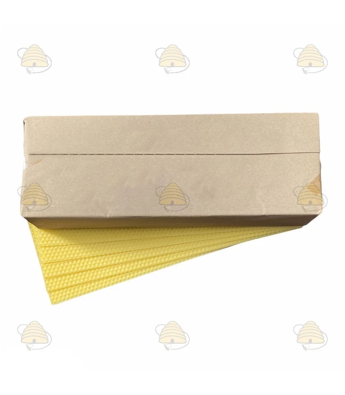 Cast beeswax foundation for Kempische honey super frames. This beeswax foundation is suitable for use in the honey super frames of Kempische beehives. The dimensions of the foundation are 31.5 x 13.7 cm. The foundation is packed per 1 kg.