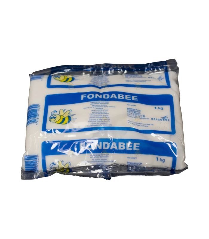 Fondabee fondant is a ready-to-use sugar paste in a 1 kg pack. The ideal pack for 3-frame nuc boxes and MiniPlus nuc boxes, etc. The fondant is an optimal sugar blend for the bees so they take it up steadily. The fondant is nice and firm so it doesn’t run out of the bag. The composition is approximately 83.5% sucrose, 3% dextrose, 2% maltose, 11.5% higher sugars. Fondabee is produced in Belgium by Belgosuc under strict human food regulations. Note: cheaper brands sometimes have a different ratio or a high HMF content, which is toxic to bees.