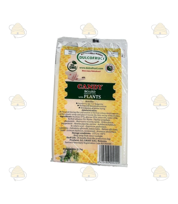 Bee fondant with herbal extracts, 1 kg. Herbal fondant is a firm, high-energy bee feed that contains natural polyphenols with antiseptics and plant-derived antibiotics. It is specially formulated to help bee colonies through the cold season. Thanks to the herbal extracts, this fondant also works well for Nosema control. The fondant is quickly consumed and also stimulates the queen to lay. The product will not melt on the hive frames. Store up to 24 months between -15°C and +30°C. Avoid direct sunlight.