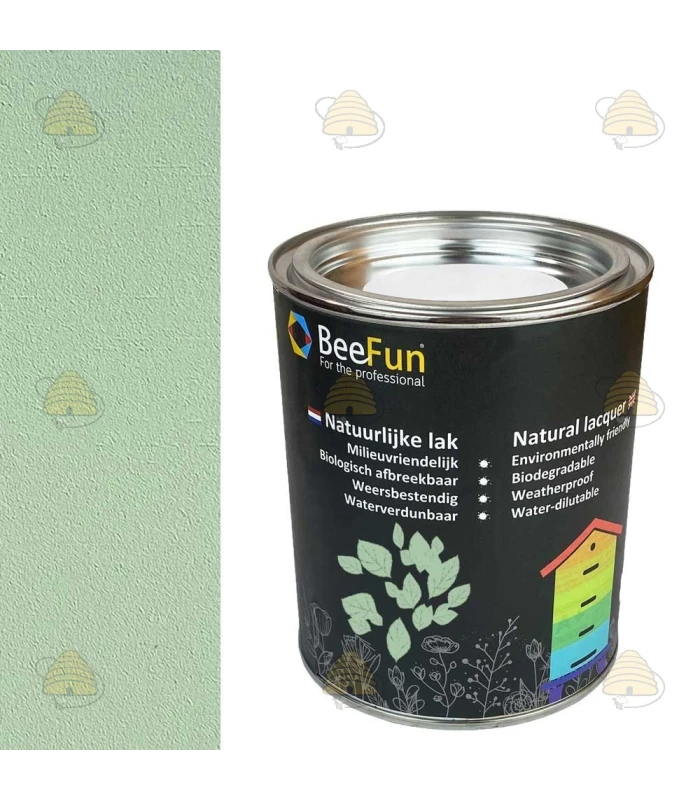 Eco-friendly paint (lacquer) in 750 ml, in pistachio, for painting a wooden beehive. This paint is made from natural ingredients and is therefore not harmful to the environment. In short, a new generation of paint for the modern, eco-friendly world. Besides being eco-friendly, the paint is also high quality and extremely durable. The paint dries quickly (4 - 6 hours at room temperature).