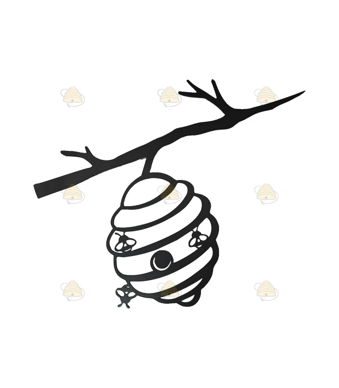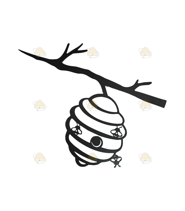 Black-painted metal branch with beehive and bees. This playful branch is ideal for hanging on a fence, bee hotel, shed, or tree. This outdoor decor piece is a unique and charming addition to your garden and also a lovely gift for anyone who loves bees. For long-lasting enjoyment, hang the decoration in a dry spot and coat the edges with Vaseline to prevent rust. The length of the branch is 28.5 cm and the height 16 cm.