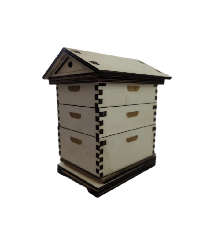 Miniature decorative beehive with a peaked roof, great as a decoration or gift for bee lovers and also perfect to paint and decorate with children to create a unique mini beehive. Along the way, you can talk about the fascinating world of bees. It is also suitable for education to explain the structure of a beehive.