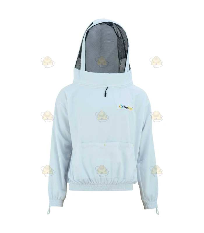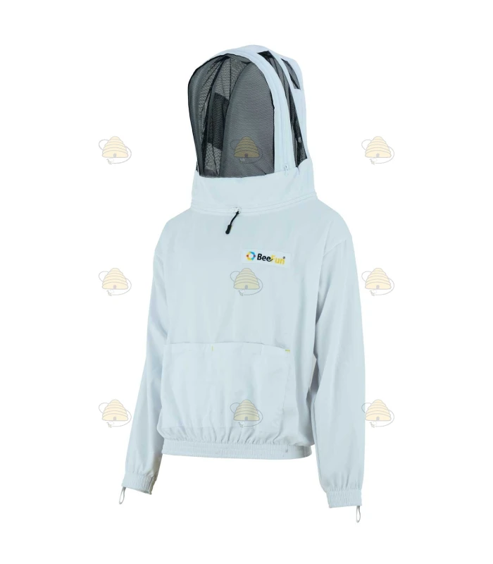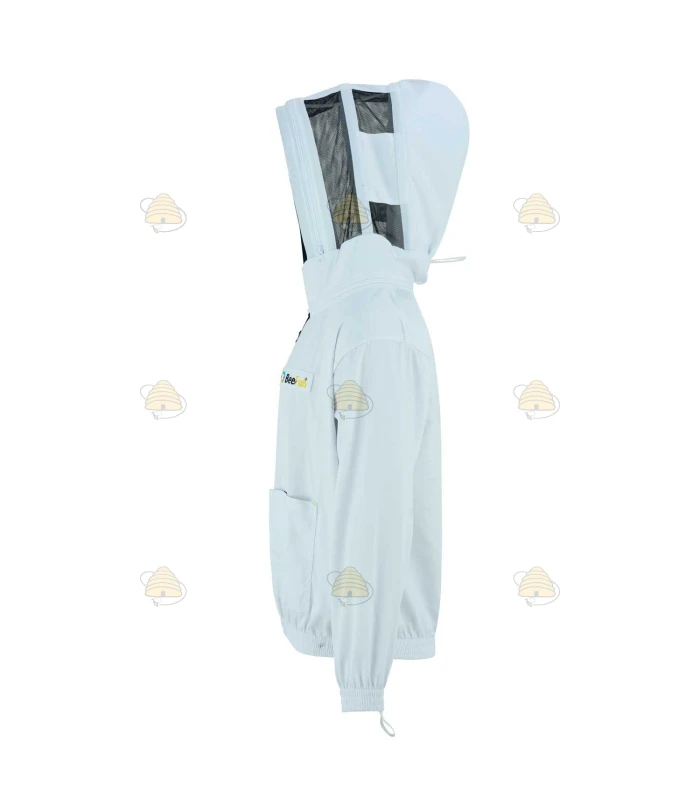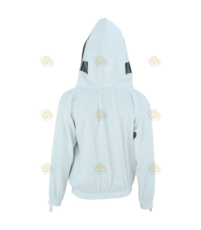 Beekeeping smock with an English hood. Ideal for observers at the apiary or as a smart budget-friendly option. The smock pulls over the head, has a chest pocket, and comes in white. The hood has two spacer rings and is attached to the smock.