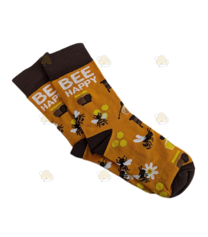Long bee socks Happy Bee/Beehive. Bee-themed long cotton socks with a fun bee motif. Choose from various sizes. Material: 80% cotton, 17% polyamide and 3% elastane.