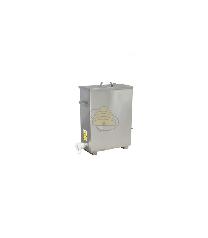 Wax melter (double-walled) for liquefying (bees)wax and for dipping beeswax candles with a convenient dipping rack. This wax melter is equipped with a water jacket, an insulated lid, temperature control from 0° C to 85° C and a stainless steel ball valve 1/2". The melter is made of acid-resistant stainless steel that is easy to clean. This device comes with a 2-year warranty.