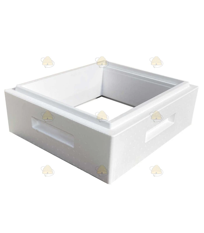 Frankenbeute Dadant US honey super for the polystyrene Frankenbeute Dadant US beehive. This honey super is supplied white (unpainted). The honey super is designed for 159 mm-high hive frames.