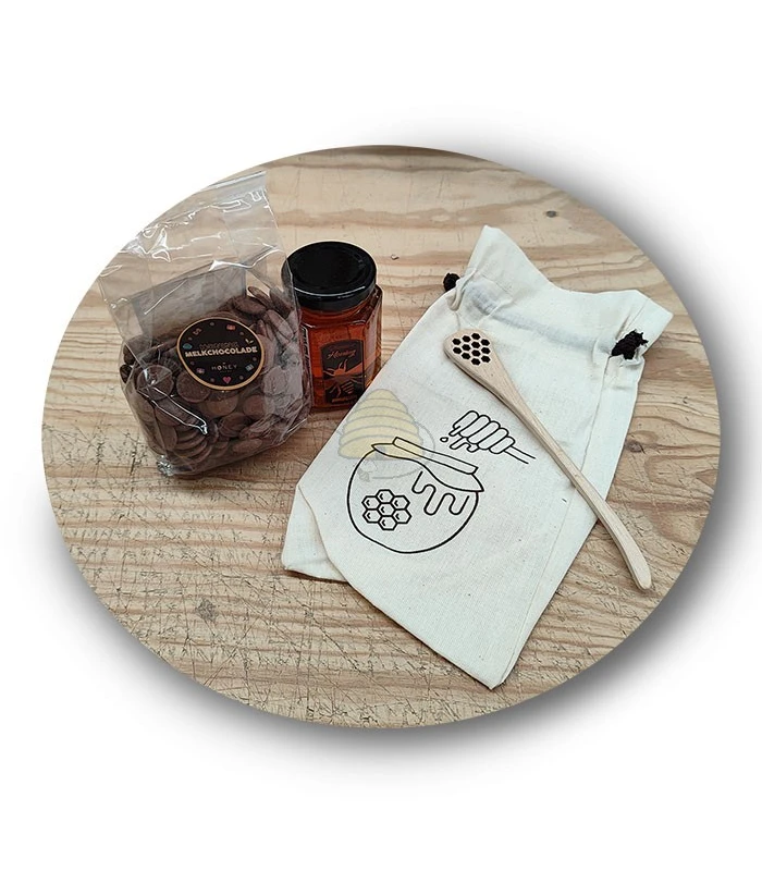 This delicious gift set is filled with beekeeper treats. The set includes delicious honey milk chocolate pellets, a 140 g jar of mountain honey and a wooden honey dipper. Perfect as a gift or to enjoy yourself.