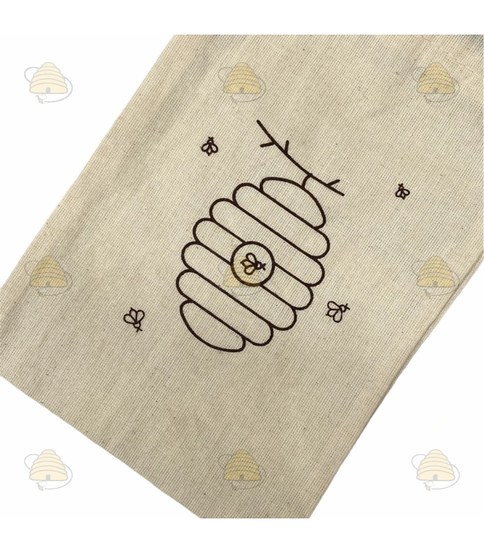 Unbleached cotton bag with a cute beehive print. Ideal for gifting a honey jar or just great for storing beekeeping supplies. Also available with other prints. The bag is approximately 27 cm tall and approximately 15 cm wide.
