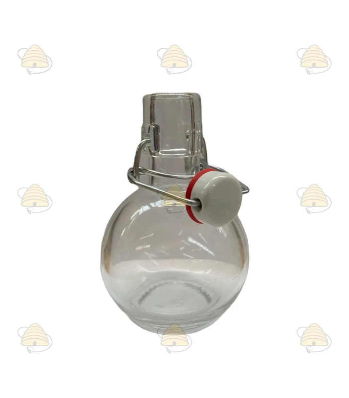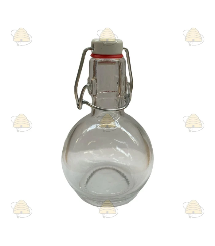 Glass swing-top bottle in a spherical shape (24 pieces) for storing mead, vinegar, or oil. Each bottle has a capacity of 200 ml.