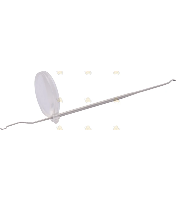 Well-made and especially handy stainless steel grafting needle with magnifying lens, so the larvae to be picked up are clearly visible. A handy tool for grafting in queen rearing.
