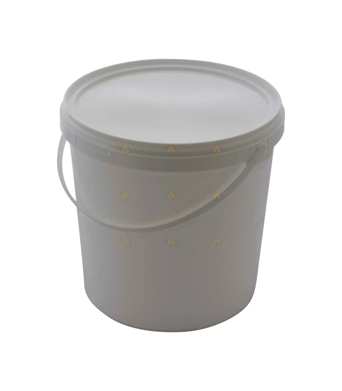 Convenient 10-liter bucket for approximately 13.5 to 15 kg of honey, with a tight-fitting lid and sturdy plastic handle. Supplied in white food-grade plastic. The height of this honey bucket is approximately 26 cm. The bucket has a top diameter of 27 cm and 23 cm at the base. Stack up to 4 of these buckets on top of each other.
