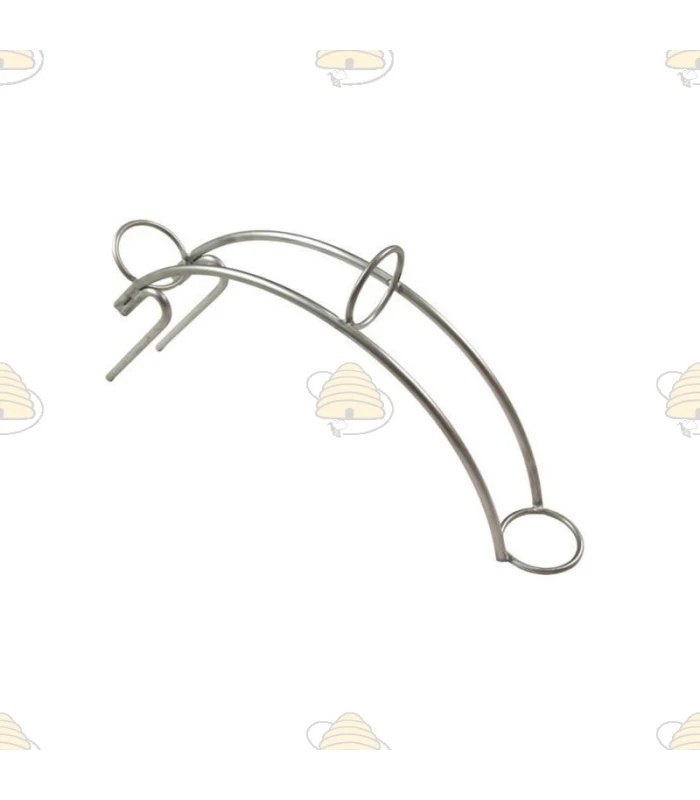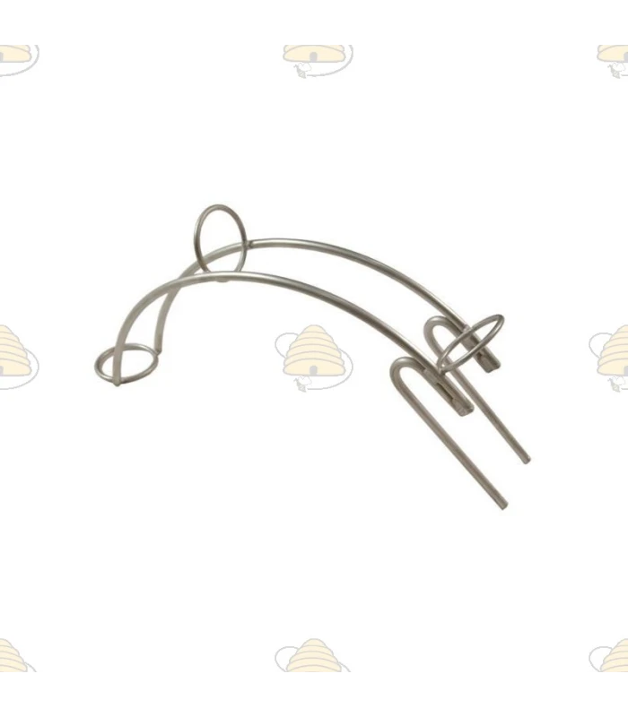 Holder made of stainless steel for hanging on a tank. The hose pass-through diameter is 4 cm. This holder keeps the honey hose securely positioned inside the tank.