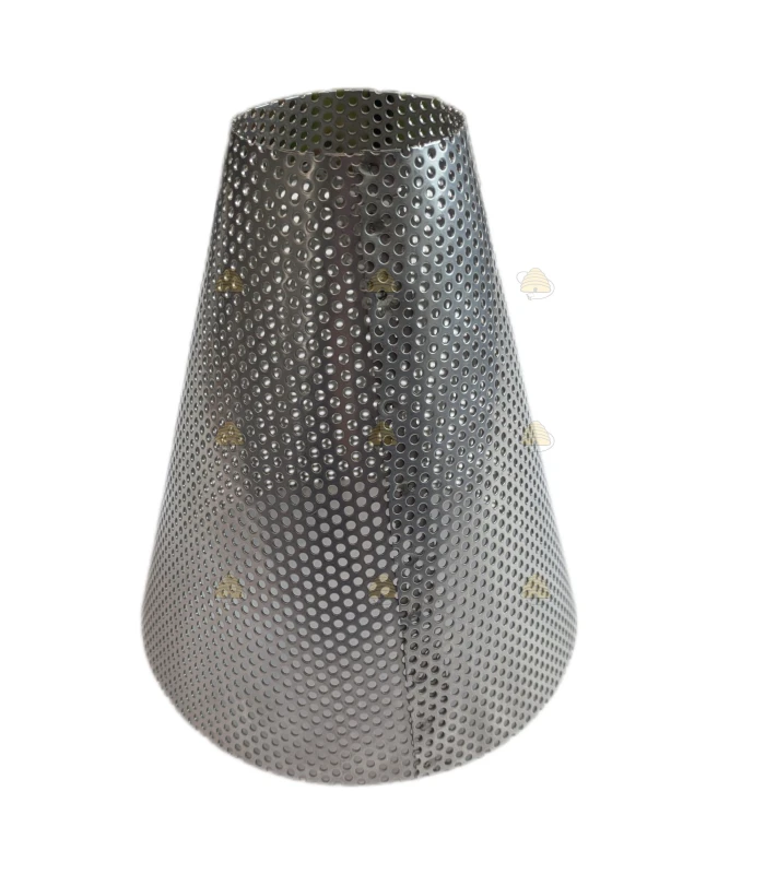 Stainless steel funnel for use in the conical honey strainer. The funnel ensures that the heat generated by a heating coil is evenly distributed, allowing the honey to flow even better through the strainer.