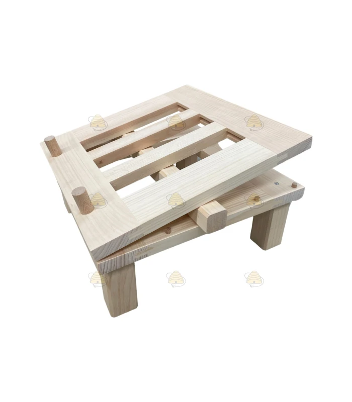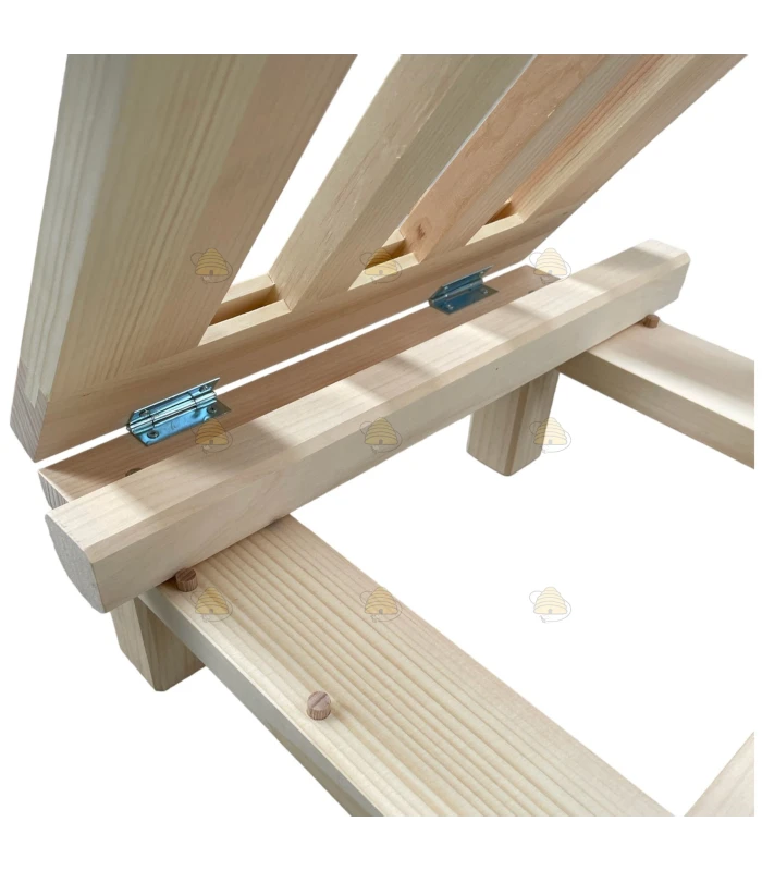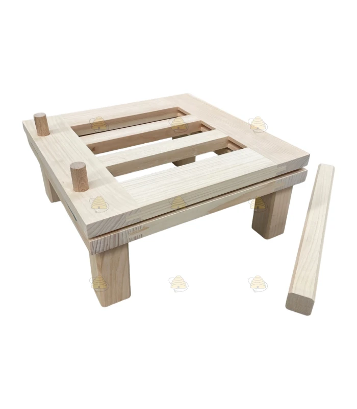 A handy decanting aid to make your honey harvest easier. You can set the tilt toward the honey gate by positioning the supplied block where you want it. Then place the bucket on top.