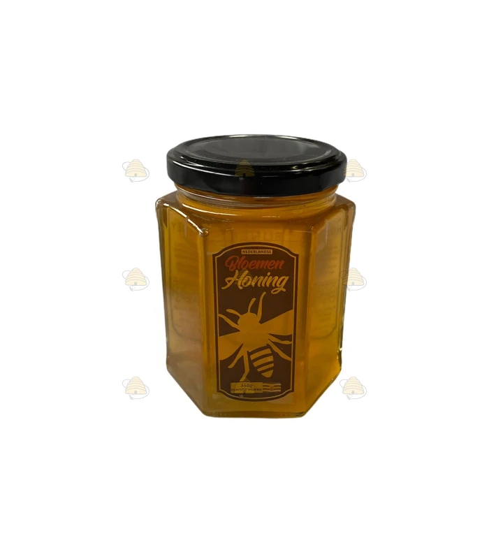 Jar of delicious local Zeeland blossom honey. This blossom honey has a robust, neutral flavor. Be surprised by this honey, guaranteed different from supermarket honey. One jar contains 350 g of blossom honey. This honey is packed by the beekeeper, origin: the Netherlands.