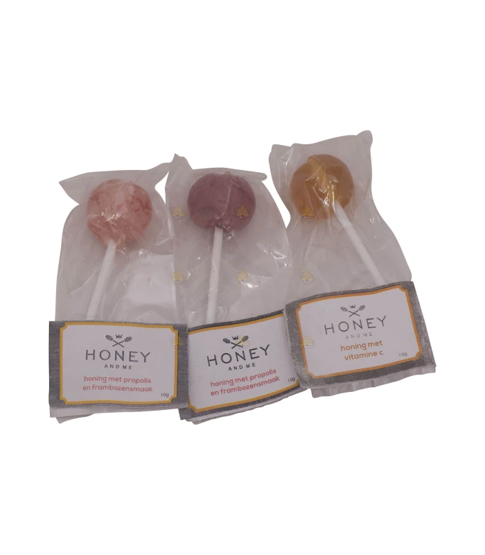 Lollipop, made with honey and vitamin C. Delicious natural flavors and low in calories.