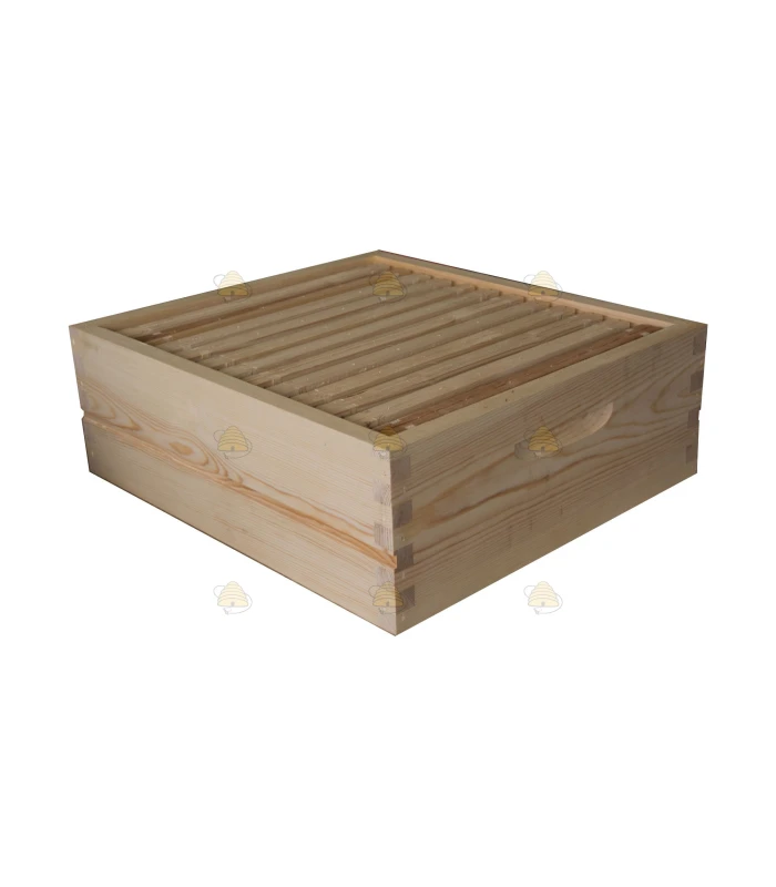 Super / honey super for the Kempische hive, fitted with spacing strips.