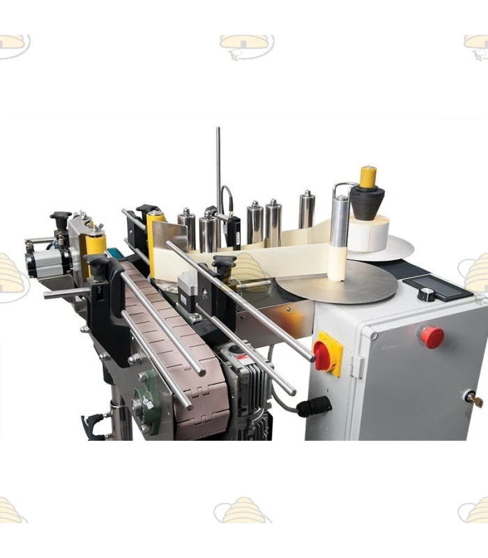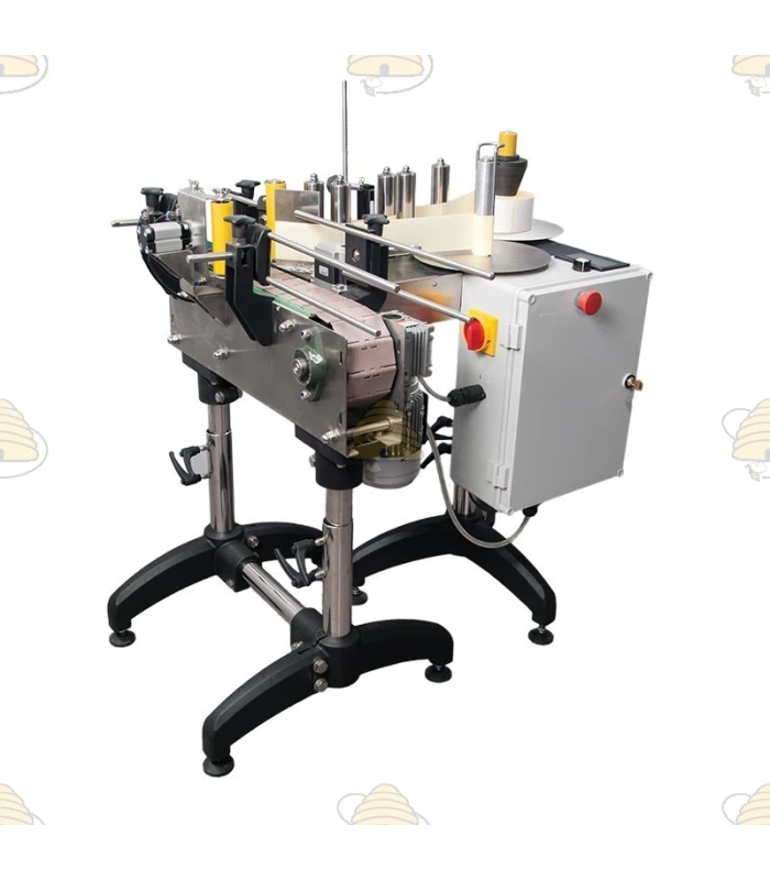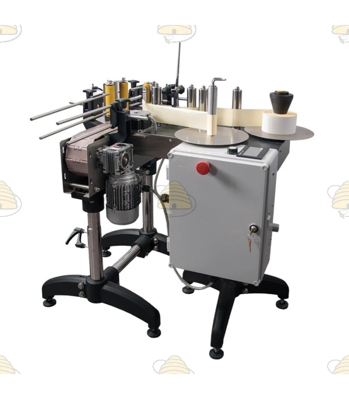 This labeling machine saves you a lot of time applying self-adhesive labels to honey jars. The machine is designed to label round glass jars with a capacity from 250 g to 1,250 g. The machine is equipped with an optical sensor that checks jar position and a second sensor for accurate label placement.