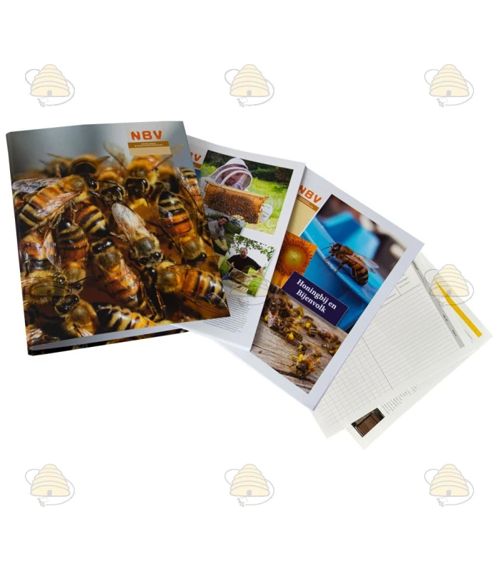 The NBV Basic Course pack consists of a theory book, a practical book, a hive record card, and a handy storage binder with an attractive design.