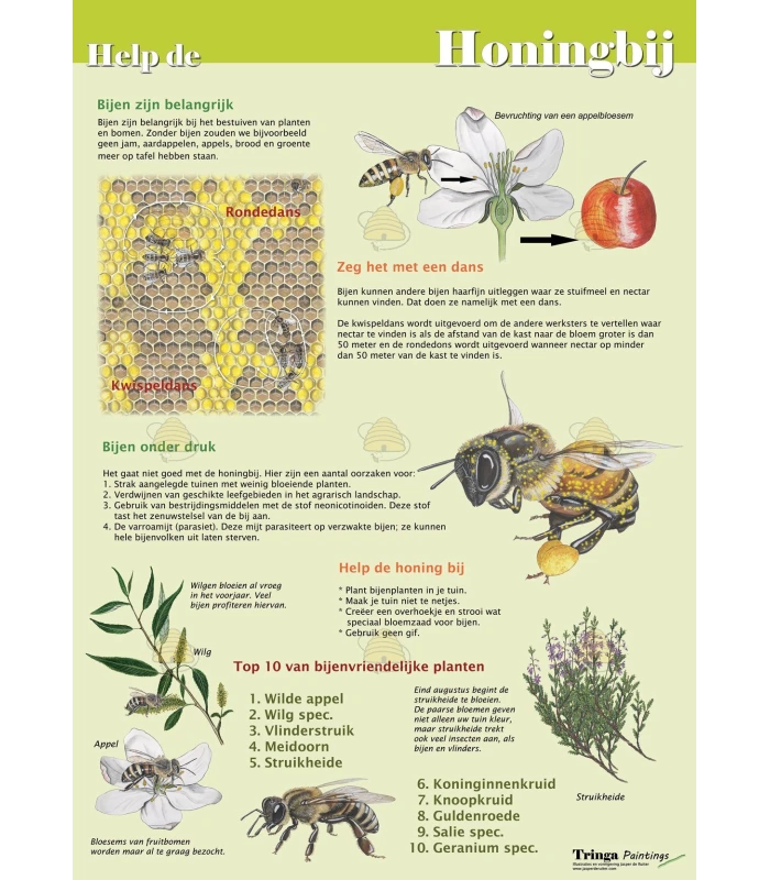 This poster teaches you which plants bees use for foraging and why bees dance. Ideal for showing visitors at an open day which plants they should plant. This poster also covers wild bees. Laminated, A1 size.