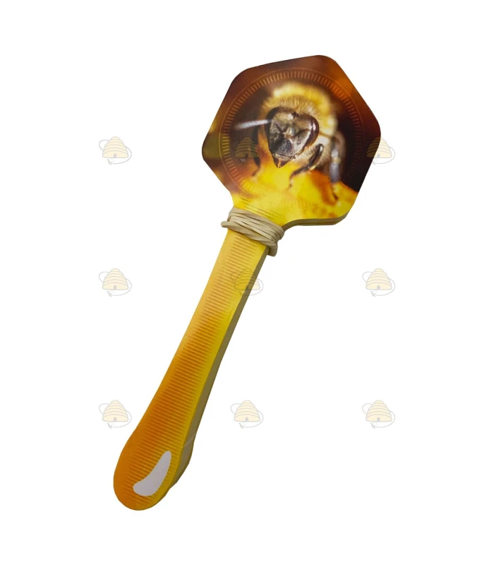 Beautiful seal label for your honey jars. The label shows a close-up of a bee. Packed in sets of 100. The label features an updated pentagonal design. The label measures 12.5 cm long and 4.5 cm wide and fits round jars of 250 g or larger and hexagonal jars of 140 g or larger.