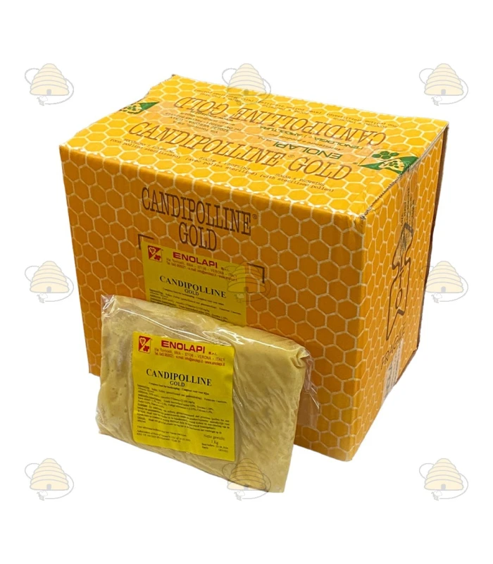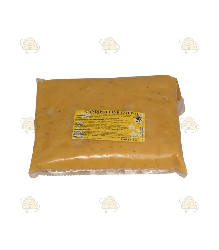 Candipolline Gold, box of 12 x 1 kg packs, is an alternative to Nektapoll, a bee feed including sugar and protein (pollen) for extra support at the start of the season or during a poor/moderate nectar flow.