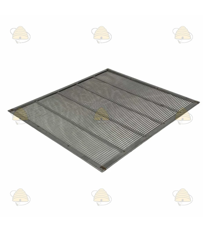 spaarkast queen excluder, made of stainless steel (RVS) and fitted with a stainless-steel frame around the entire outer edge.