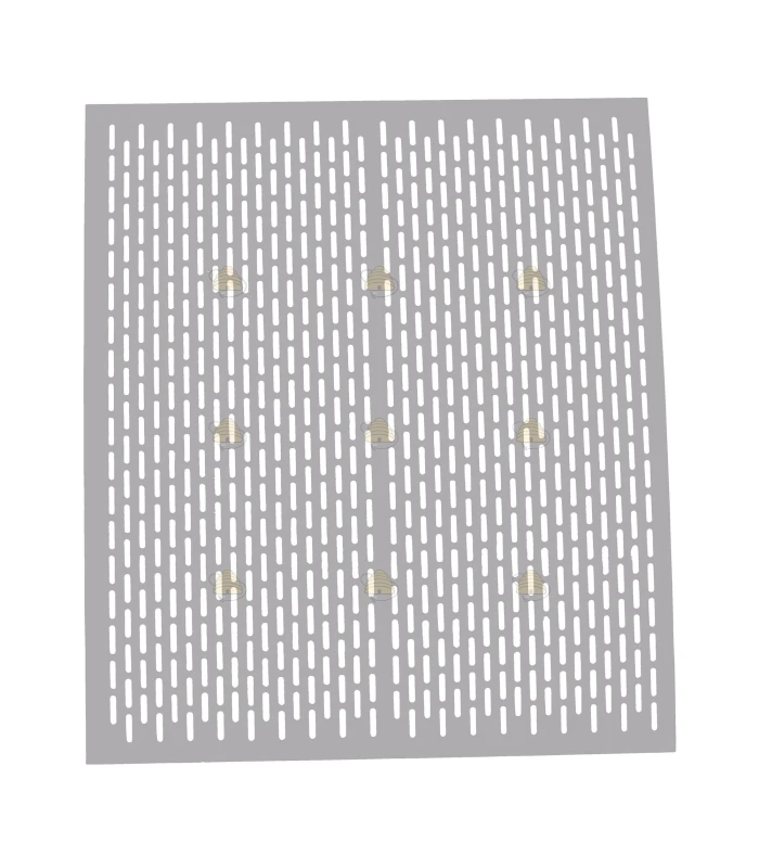 Perforated aluminum queen excluder for the Dadant US beehive, measuring 50.5 x 50.5 cm. The excluder is approx. 1 mm thick. The queen excluder allows the bees to reach the honey super while keeping the queen out. This excluder sits between the brood box and honey super. Also available in other materials and sizes.