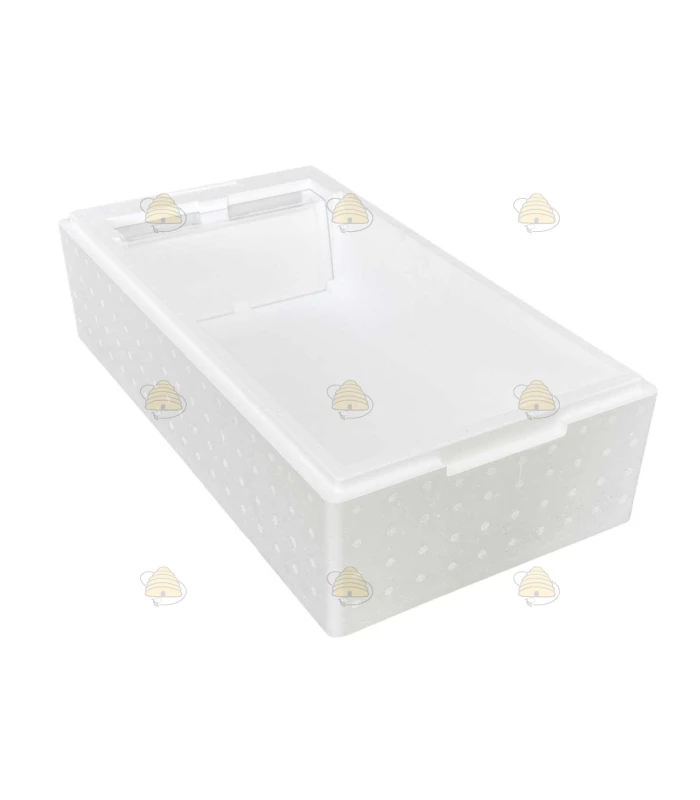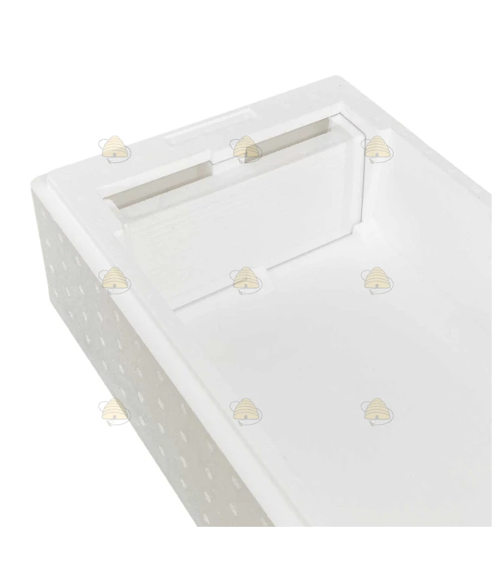 Top feeder for an EPS six-frame nuc box in Simplex / German Normal / Zander sizes. Thanks to the excellent insulating properties of EPS (plastic) nuc boxes, colonies can be overwintered in them. The feeder comes with an internal divider.