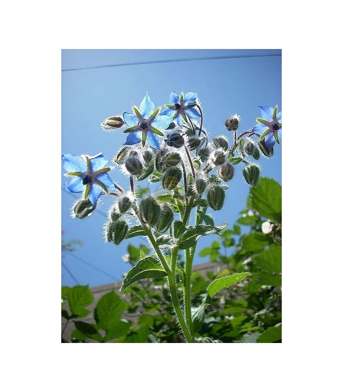 Seeds of borage (Borago officinalis). This bee forage plant is also often called cucumber herb and blooms with distinctive blue flowers. Beekeepers know it as a plant loved by both bees and bumblebees. Borage is suitable for all soil types. Sowing period: March–April and September–October.