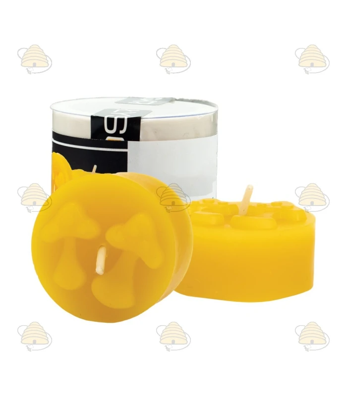 Tealight with mushrooms, silicone candle mold. This candle measures 3.5 cm in diameter and 1.8 cm high. You need 20 grams of beeswax per candle.