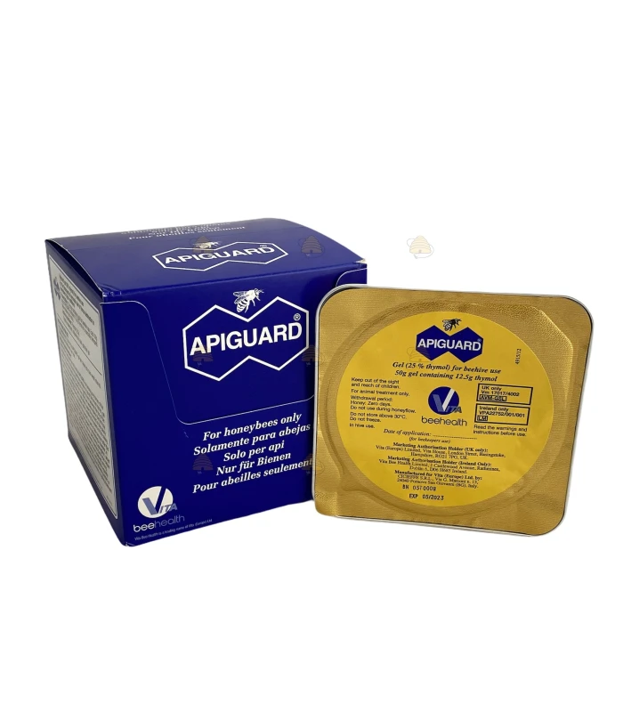 Apiguard is based on thymol, just like Thymovar. Apiguard is a gel that slowly releases thymol vapours. Varroa mites cannot tolerate these. Pack of 2 for 1 hive. Its mode of action is identical to Thymovar. Scroll to the bottom of the page for more information. When you purchase more than 5 units, we offer an 18% discount!
